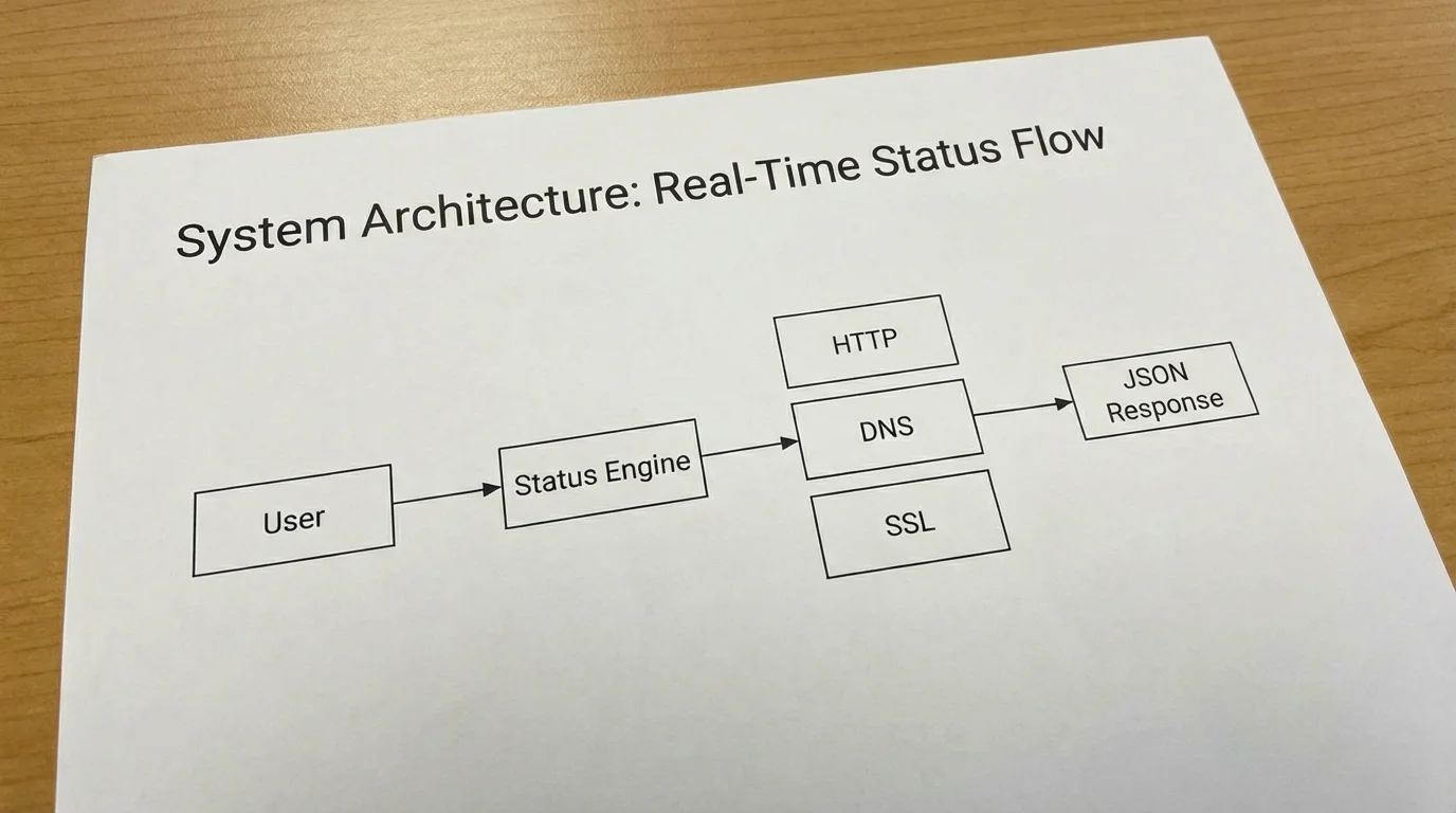 Beyond being a public website status checker, the platform now exposes a public, real-time API that allows AI systems, monitoring tools, dashboards, and developers to read the live status of any domain in a structured, machine-readable format.